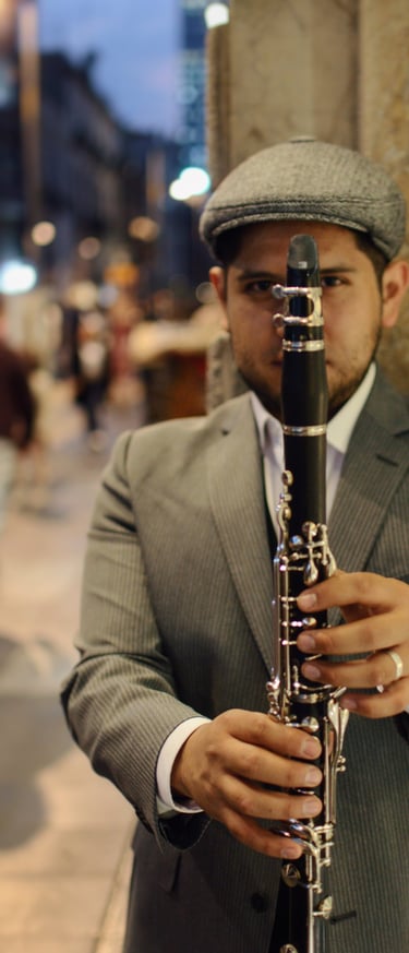 ¿Buscas música que eleve la elegancia de tu evento? Soy Jim Morales, clarinetista y cantante solista, y ofrezco un repertorio que abarca géneros como jazz, swing, tango, música italiana, francesa y muchas melodías más.